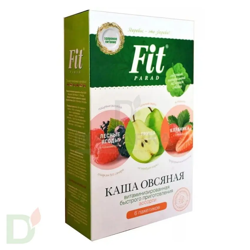 Каша "ФитПарад" овсянная Ассорти "Лесные ягоды,груша,клубника" 6 пакетиков.