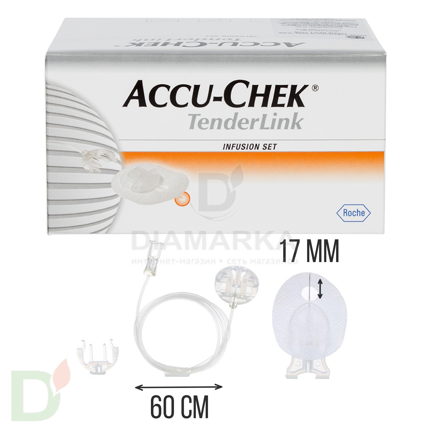 Инфузионный Акку-Чек ТендерЛинк набор состоит из иглы длиной 17 мм. и катетера длиной 60 см.