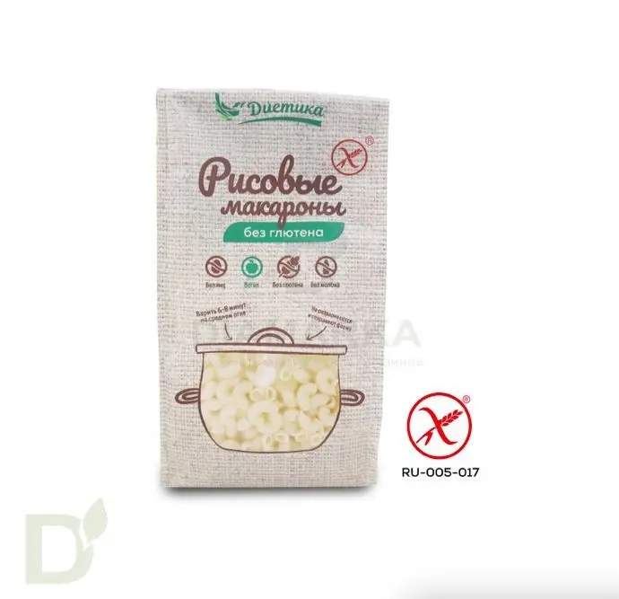 Макароны безглютеновые рисовые Диетика Рожок большой 250г