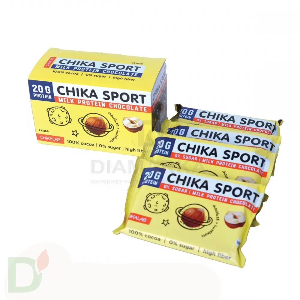 <h2>Цельные орехи, залитые молочным шоколадом</h2> Найти подобную плитку в наше время - редкость. Но производители ЧикаЛаб орехов не пожалели и на качестве не сэкономили. Поэтому получилось то, что получилось: нежнейший тающий шоколад с хрустящими цельными орешками. Оторваться от такого лакомства будет сложно!<br> <h2>Очень много орехов, минимум углеводов</h2> Вместо привычного дико калорийного и обладающего высоким ГИ сахара используется сукралоза. В ней 0 калорий и углеводов, а гликемический индекс также равен 0! НЕ обладает неприятным послевкусием.<br> Шоколад подходит для беременных, кормящих, диабетиков, детей и спортсменов.<br> <h2>20 грамм протеина на плитку</h2> Это вам не шутки! Даже пара долек шоколада смогут значительно разнообразить ваш рацион полезными жирами и ценным белком. А настроение после такого перекуса точно будет на высоте!<br> <h2>Состав шоколада с фундуком</h2> молочный шоколад (водорастворимые волокна кукурузы, какао масло, какао тёртое, молоко сухое цельное, концентрат сывороточного белка, эмульгатор (соевый лецитин), ароматизаторы натуральные, подсластитель (сукралоза)), фундук. Молочный шоколад содержит общий сухой остаток какао не менее 33%, сухой обезжиренный остаток какао не менее 5%, сухой молочный остаток не менее 26%, молочный жир не менее 4%<br> <br> <b>Может содержать незначительное количество миндаля.</b><br> <br> Содержит натуральный шоколад, поэтому при нарушении температурных режимов возможна потеря формы и изменение внешнего вида продукции.<br> <h2>КБЖУ на 100 грамм</h2> б - 20, ж - 42,5, у - 10,2<br> клетчатка - 20 грамм<br> 543 ккал